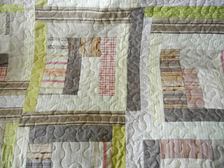This is a birthday gift for my friend. I started to help her for organizing her studio a couple months ago, and she keeps providing me whatever she doesn't need anymore. I picked up some small blocks from them, and made this small quilt for her. I put a hanging sleeve on the back, so it can be used as a wall hanging as well. I sent her some pics of it for some reasons, she seemed to like it :D GOOD :D