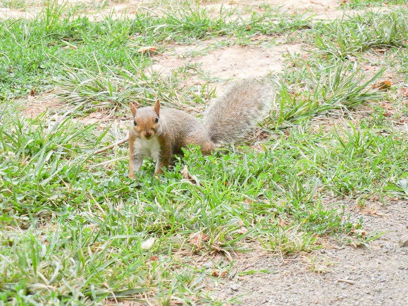 The cute little things -- a fight with squirrels and bees protecting food. Bees were fliying all over like flies. They don't do anything if we don't do anything to them, it was just annoying.