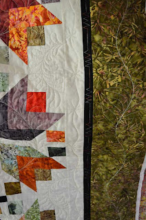 Taking a break from the Quilt Show post, I am showing one of my recent quilting jobs from Marea :) She made this quilt for her daughter, and I enjoyed quilting. She told me "No flowers," and the first quilting idea that had came up on my mind was flowers... So, I chose leaves wondering whether leaves and flowers make a different impression. I am very happy that Marea liked it!
